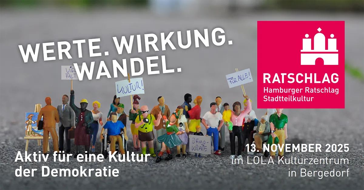 Der Hamburger Ratschlag Stadtteilkultur 2025 widmet sich Mitte November im LOLA Kulturzentrum in Bergedorf einem Thema, das aktueller nicht sein könnte: Stadtteilkultur und Demokratie. Jetzt steht das Programm.