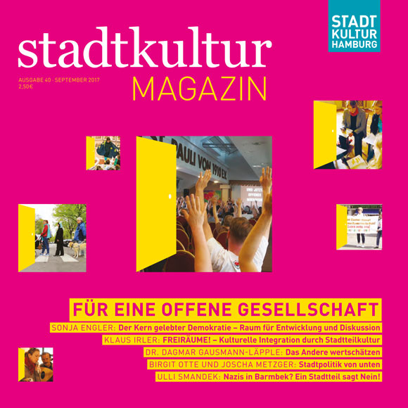 Als inhaltlichen Auftakt für das Thema hat der Dachverband ein stadtkultur magazin zum Thema herausgebracht: stadtkultur magazin Nr. 40: Für eine offene Gesellschaft.