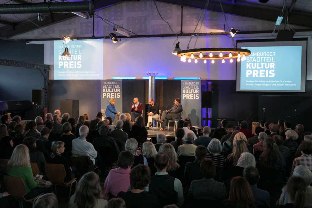 Unter den Gästen in der Halle 424 waren neben Vertretern der Stadtteilkultur und der nominierten Projekte Gäste aus Politik, Verwaltung, Gesellschaft und Kultur, die von der freien Journalistin Catarina Felixmüller durch die Veranstaltung geführt wurden.