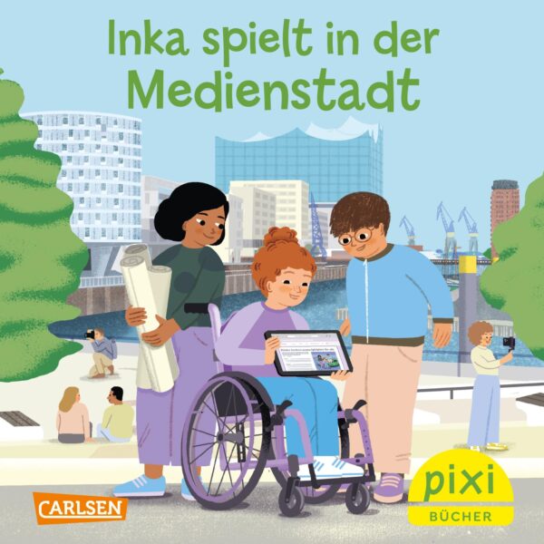 „Inka spielt in der Medienstadt“, heißt das Pixi Buch, das nextMedia.Hamburg zusammen mit der Agentur Carlsen K des Carlsen Verlags konzipiert hat. Dort treffen Inka, Yunis und Ella auf die Herausforderung, ein rollstuhltaugliches Karussell zu erwerben und dafür entsprechend Mittel zu generieren: Die Kinder entwickeln einen Plan. Gemeinsam mit ihren Freunden drehen sie ein Video, generieren Aufmerksamkeit und nutzen zugleich die Vorteile der Medienstadt Hamburg.