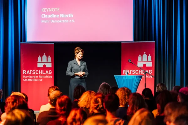 Nachschlag zum Ratschlag: Wann haben Sie das letzte Mal Ihre Meinung geändert? Erinnern Sie sich? Wie kam es zu dieser Veränderung? Was hat Sie bewegt und letztendlich umgestimmt? Diese zentralen Fragen standen im Fokus der Keynote von Claudine Nierth vom Mehr Demokratie e.V. auf dem Hamburger Ratschlag Stadtteilkultur 2025 sowie des anschließenden Workshops „Methoden der Demokratie-Stärkung“, den sie leitete. Der Beitrag der Bundesverdienstkreuzträgerin, der die inhaltlichen Impulse von Keynote und Workshop bündelt, steht nun in der Dokumentation im stadtkultur magazin Nr. 71 zum Nachlesen bereit.