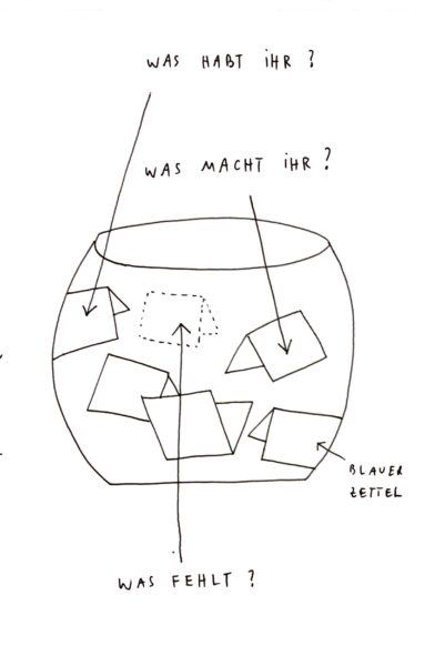 Der Methoden-Workshop vermittelt viele Ansätze, um neue und intuitive Perspektiven auf die herausfordernde und teils frustrierende Demokratiearbeit unserer Zeit zu gewinnen. Am Ende wartet die kreative Zusammenfassung der Ergebnisse durch Johanna Benz als Graphic Recorder und Moritz Etorena als Poetic Recorder. Und für die Teilnehmenden gibt es am Buffet noch „Pralinés der Partizipation“ und „Eclairs der Erkenntnis“ für den Weg nach Hause und als Stärkung für den weiteren Prozess.