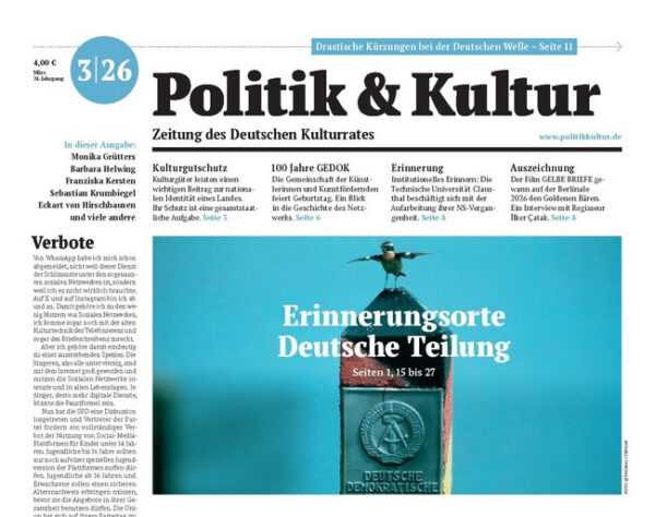 Im Schwerpunkt der März-Ausgabe von Politik & Kultur, der Zeitung des Deutschen Kulturrates, geht es um das Grüne Band als Erinnerungsort Deutscher Teilung.
