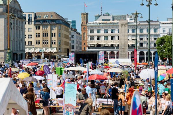 Am 20. Juni 2026 wird auf dem Rathausmarkt Hamburg eine 400 Meter lange Tafel für Demokratie und Vielfalt aufgebaut. Zum Auftakt der Hamburger Stiftungstage kommen zahlreiche Initiativen und Organisationen zusammen, um ihr Engagement sichtbar zu machen. Besucher*innen können Platz nehmen, miteinander ins Gespräch kommen und die Vielfalt der Stadt unmittelbar erleben.