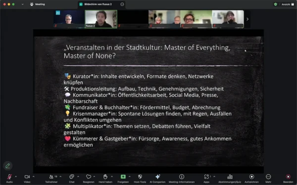 Für die inhaltliche Umsetzung der Reihe konnte Dan Thy Nguyen von fluxus2 gewonnen werden. Das kleine Team von fluxus2 hat früh begonnen, KI-Tools zu testen und für die tägliche Praxis weiterzuentwickeln, da es immer an Personalressourcen fehlte. Diese Erfahrungen gibt Dan Thy in der Webinarreihe KI@KULTUR an die Mitglieder von STADTKULTUR im kollegialen Austausch weiter. Außerdem recherchierte er relevante Referent*innen für die weitere Ausgestaltung der Reihe.